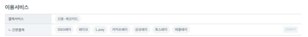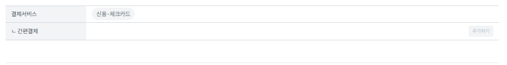 그 결과 간편결제에서 신용*체크카드 결제가 이루어지지 않고 오직 간편결제 목록들만 구성되는 결과를 확인할 수 있었습니다.