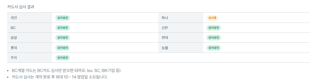 - 카드사 심사(평균 7일 ~ 10일)