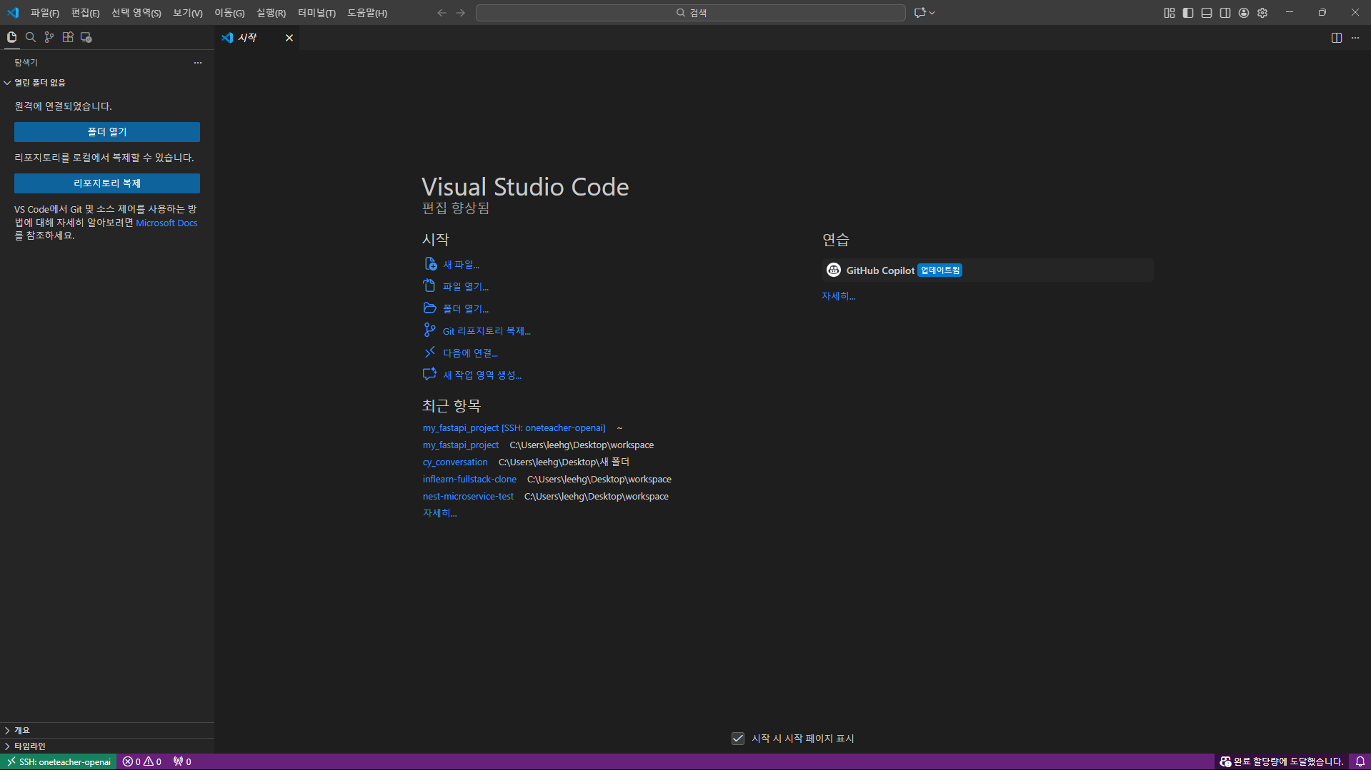 - SSH 화면 접속 후, SSH 폴더 안에 있는 프로젝트 클릭해서 프로젝트가 보이도록 만들기